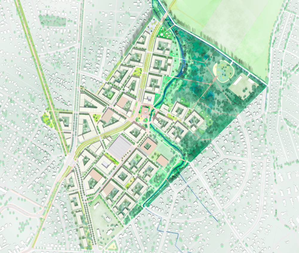 Ausloberin:— Stadt Berlinin Kooperation mit:— Grieger Harzer Dvorak LandschaftsarchitektenNutzung:— Wohnen, Gewerbe, Soziales, SchuleWohneinheiten:— 3.700BGF:— 577.000m²Fläche:— 57 ha