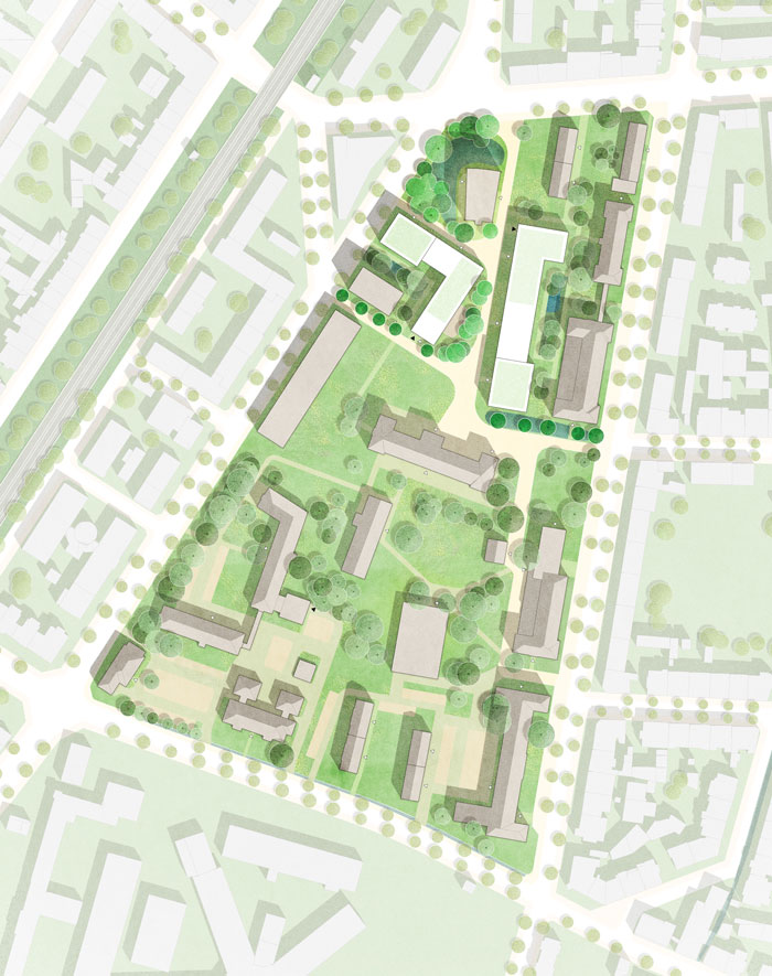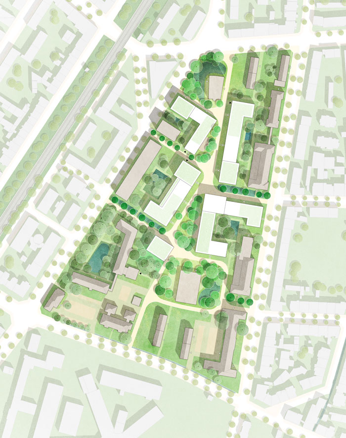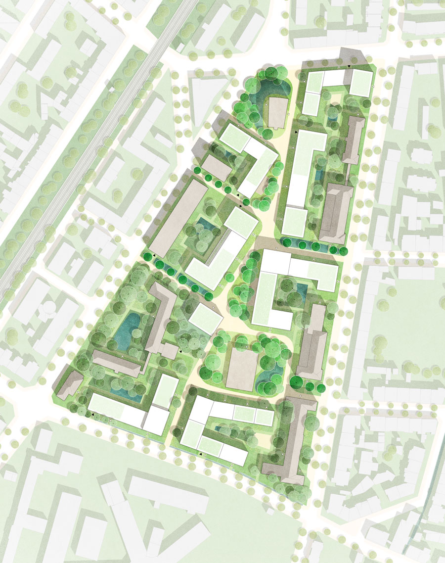 Ausloberin:— Stadt FreiburgNutzung:— Verwaltung, Wohnen, Gewerbe, SozialesWohneinheiten:— 120BGF:— 87.000m²Fläche:— 6 ha