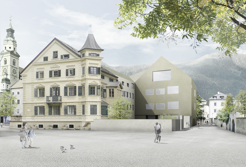 Das Grundstück für die neue Stadtbibliothek liegt mitten im Zentrum von Brixens Altstadt. Der Neubau der Stadtbibliothek Brixen integriert auf gleichermaßen pragmatische wie poetische Weise die komplexe Bestandssituation und verleiht dem einmaligen historischen Standort durch seine behutsame, dabei aber selbstbewußt zeitgenössische Eingliederung in den historischen Kontext weitere Prägnanz.